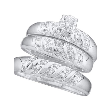 10kt White Gold His & Hers Round Diamond Solitaire Matching Bridal Wedding Ring Band Set 1/12 Cttw