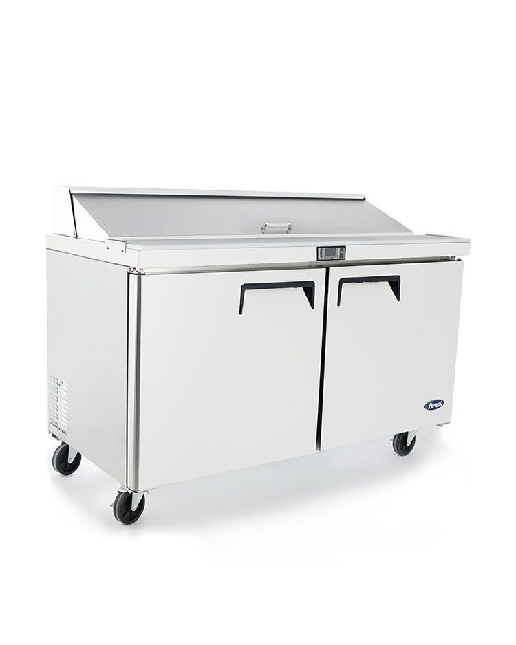 Prep table<br>60 1/5 in (W) x 30 in (D) x 41 3/8 in (H)<br>17.2 cu ft<br>Includes (16) 1/6 stainless steel pans and 10 in poly cutting board<br>(2) hinged door<br>(2) adjustable shelves<br>R290 Hydrocarbon refrigerant<br>1/5 HP<br>115V/60hz/1-ph/2.8amps<br>NEMA 5-15P plug<br>cETLus, ETL-Sanitation<br>2 year labor and parts warranty, 5 year compressor warranty