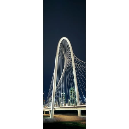 Panoramic Images Stretched Canvas Art - Bridge with skyscrapers in the background, Margaret Hunt Hill Bridge, Dallas, Texas, USA - Large 36 x 12 inch Wall Art Decor Size.