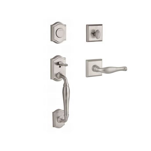 - Baldwin Reserve Full Dummy Handle set Westcliffe x Decorative with Traditional Square Rose in Satin Nickel Finish Right hand