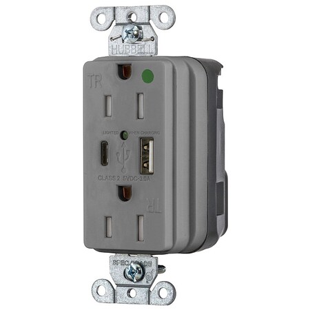 Hubbell Wiring Devices Usb Chg Snap Hg 15A125V Dup 5A Pt Ac, Gy - SNAP8200UACGY