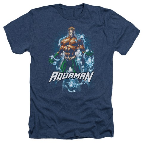 Trevco Jla-Water Powers Adult Heather Tee, Navy - Large