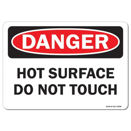 OSHA Danger Decal, Hot Surface Do Not Touch, 5in X 3.5in Decal, 10PK