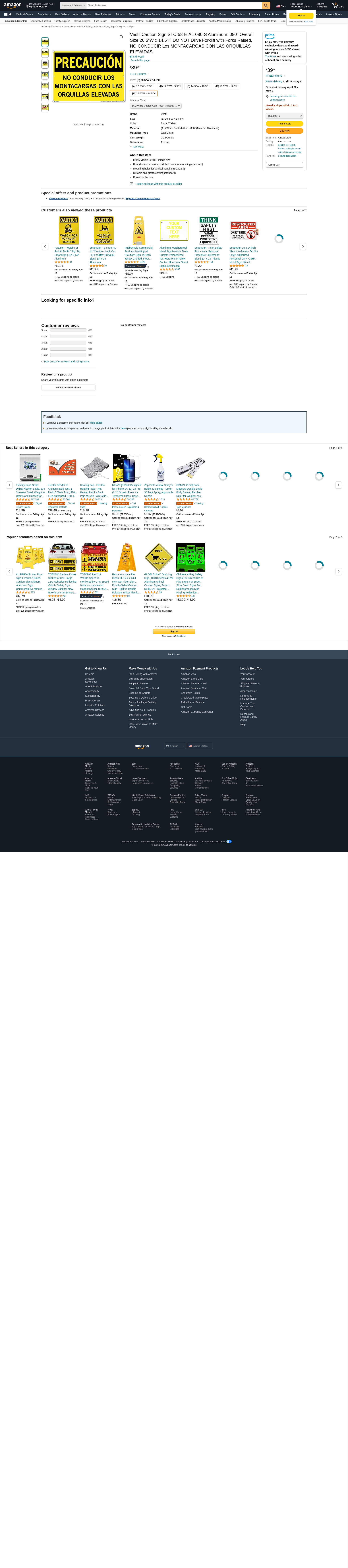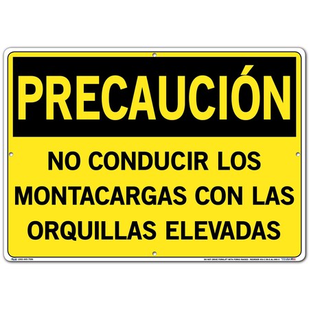 Vestil Caution Sign SI-C-58-E-AL-080-S Aluminum .080" Overall Size 20.5"W x 14.5"H DO NOT Drive Forklift with Forks Raised, NO CONDUCIR Los MONTACARGAS CON LAS ORQUILLAS ELEVADAS