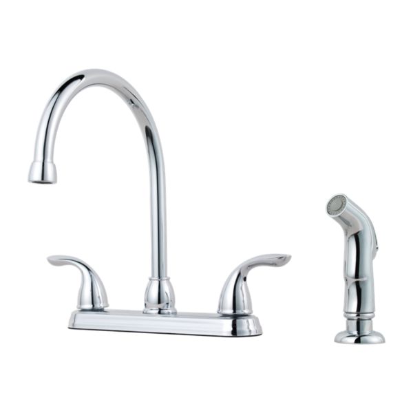 Pfister G1365000 Pfirst Series 2-Handle Kitchen Faucet with Side Spray in Polished Chrome, 1.8 GPM