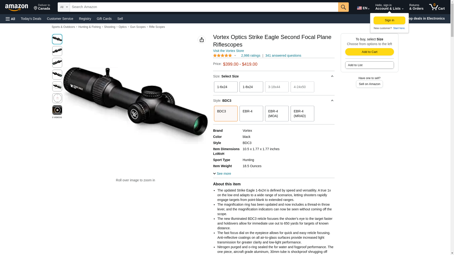 Vortex Optics Strike Eagle 1-6x24 Second Focal Plane Riflescope - BDC3 Reticle (MOA), Black