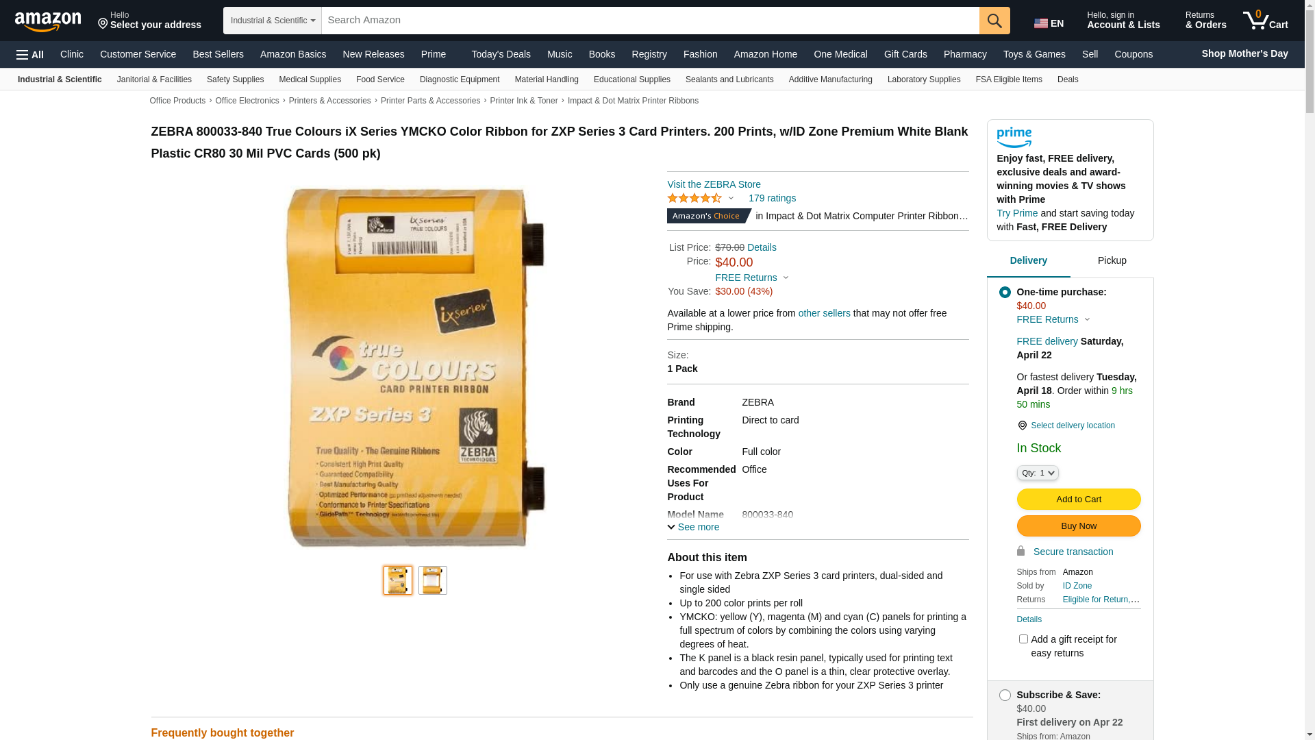 Zebra ix Series color ribbon for ZXP Series 3 YMCKO The Zebra 800033-840 YMCKO is a full color ribbon capable of producing 200 prints. Zebra 800033-840 YMCKO ribbons consist of yellow (Y) magenta (M) and cyan (C) panels. (K) is a black panel used for printing text and barcodes. (O) is a clear protective overlay.The Zebra 800033-840 ribbon is used for double sided printing. Zebra 800033-840 YMCKO ribbon is an ixseries printer ribbon, istands for intelligent, your Zebra i -Series printer will automatically read the ribbon type and inform you of the quantity of prints used and the quantity of prints remaining. This ribbon hasintegratedcleaning roller. For Single Sided Printing: Can print 200 full color prints with black text and/or barcode For Double Sided Printing: Can print 100 full color prints with black text and/or barcode Compatible With Zebra ZXP Series 3 Printers Zebra ZXP Z31 Single Sided Printers Zebra ZXP Z32 Double Sided Printers Tags: 800033-840