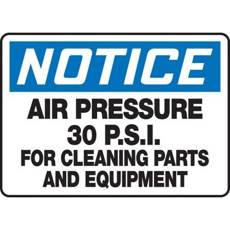 NOTICE AIR PRESSURE 30 P.S.I FOR CLEANING PARTS AND EQUIPMENT 10" x 14" Aluminum Sign