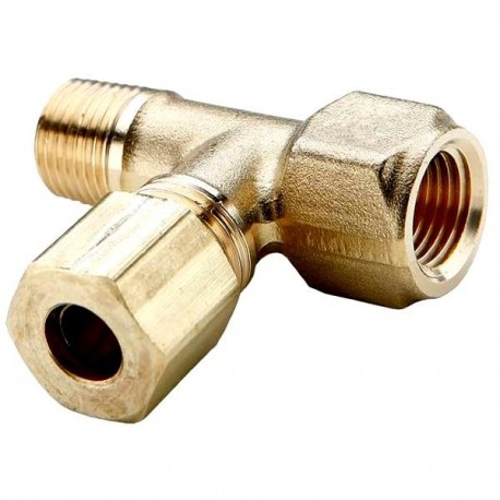 1/8" Pipe Thread x 7/16-24 Straight Thread Brass Adapter Tee