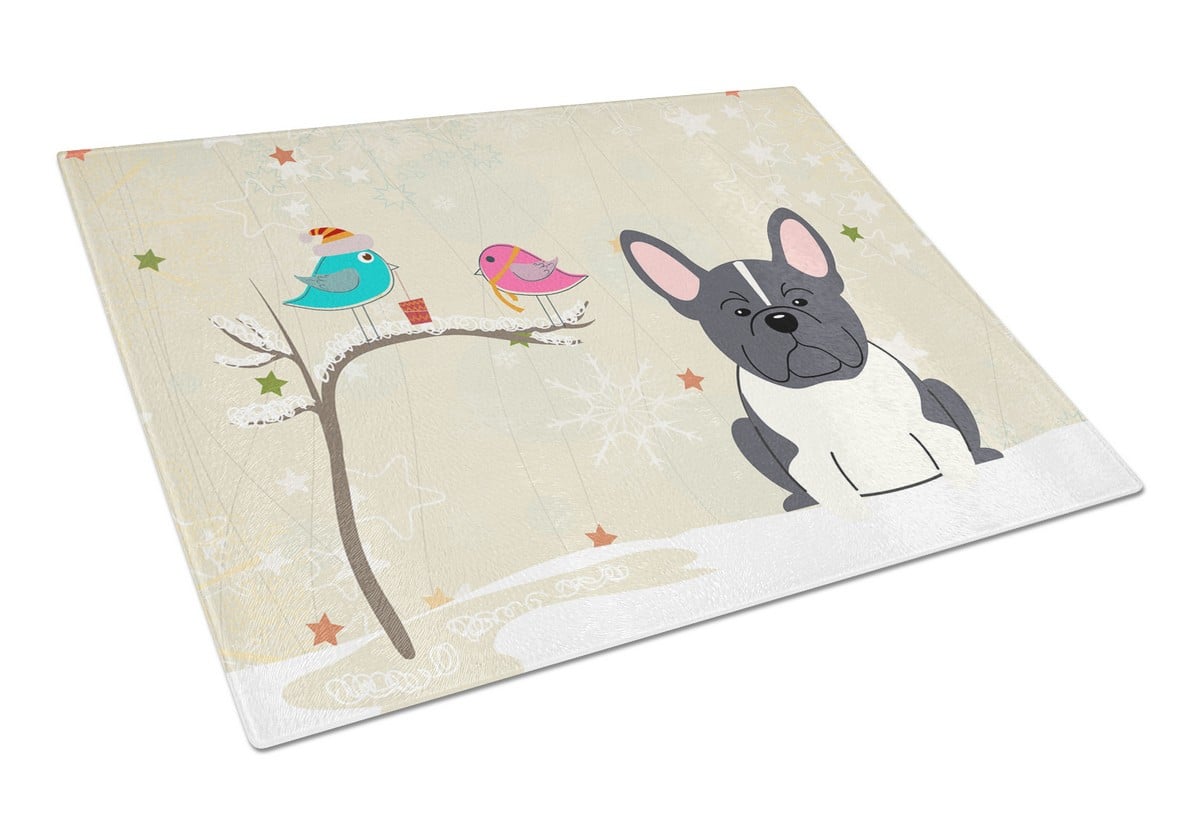 Caroline's Treasures BB2484LCB Christmas Presents between Friends French Bulldog Black White Glass Cutting Board Large, 12H x 16W, multicolor