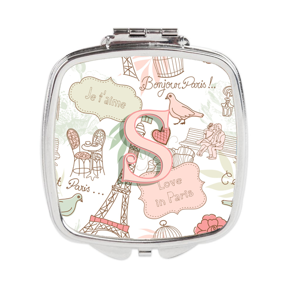 Carolines Treasures CJ2002-SSCM Letter S Love in Paris Pink Compact Mirror