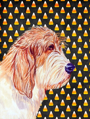 Carolines Treasures LH9047CHF 40 x 40 in. Petit Basset Griffon Vendeen Candy Corn Halloween House Size Canvas Flag