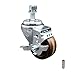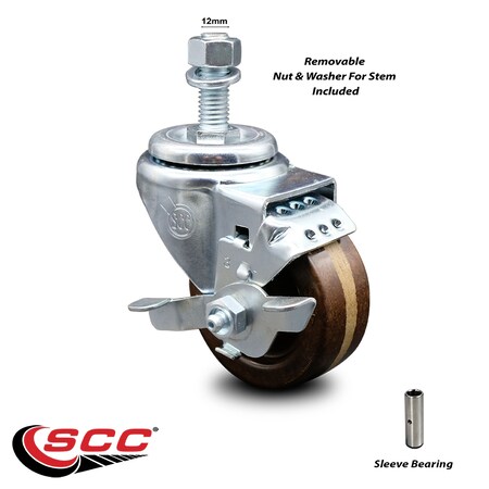 High Temperature Phenolic Swivel Threaded Stem Caster - 3" x 1.25" Brown Wheel and 12MM Metric Stem & Top Locking Brake - 300 lbs Capacity/Caster - Service Caster Brand