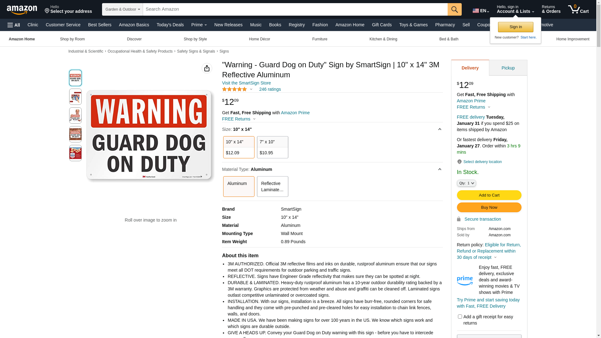 "Warning - Guard Dog on Duty" Sign by SmartSign | 10" x 14" 3M Reflective Aluminum