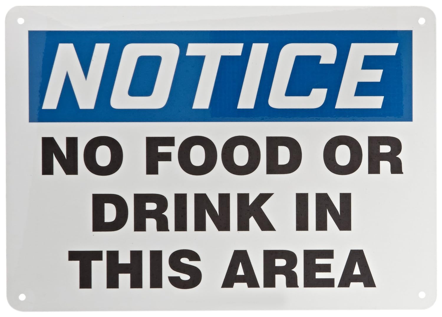 Accuform MHSK838VA Aluminum Safety Sign, Legend "Notice NO Food OR Drink in This Area", 10" Length x 14" Width, Blue/Black on White