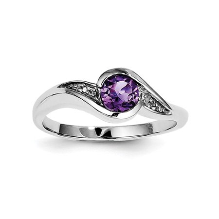 <br /> <br />Item Weight:2.77 Gm <br /> <br />Width:2 Mm <br /> <br />Average Weight:2.77 Gm <br /> <br /> <b>Attributes:</b> <br /> <br /> <b>*</b> Polished <br /> <br /> <b>*</b>Open Back <br /> <br /> <b>*</b>Sterling Silver <br /> <br /> <b>*</b>Amethyst <br /> <br /> <b>*</b>Diamond <br /> <br /> <b>*</b>Rhodium Plated <br /> <br />Metal:Sterling Silver <br /> <br />Country Of Origin:Thailand <br /> <br /> <b>Stone Type1:</b>Diamond <br /> <br /> <b>*</b>Stone Creation Method1:Natural <br /> <br /> <b>*</b>Stone Treatment1:Not Known <br /> <br /> <b>*</b>Stone Color1:Other Color <br /> <br /> <b>*</b>Stone Weight1:0.006 <br /> <br /> <b>*</b>Stone Shape1:Round Brilliant Shape <br /> <br /> <b>*</b>Stone Quantity1:2 <br /> <br /> <b>*</b>Stone Setting1:Prong Set <br /> <br /> <b>Stone Type2:</b>Amethyst <br /> <br /> <b>*</b>Stone Creation Method2:Natural <br /> <br /> <b>*</b>Stone Treatment2:Heat Treated <br /> <br /> <b>*</b>Stone Color2:Violet <br /> <br /> <b>*</b>Stone Quantity2:1 <br /> <br /> <b>*</b>Stone Weight2:0.37 <br /> <br /> <b>*</b>Stone Shape2:Round Brilliant Shape <br /> <br /> <b>*</b>Stone Size2:5 Mm <br /> <br /> <b>*</b>Stone Setting2:Prong Set <br /> <br /> <br />