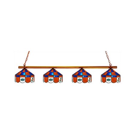 WVE1618 <br /> <b>Features</b> <br /> <ul> <li>Direct wires supplied with canopy kits</li> <li>Officially licensed NCAA</li> <li>Tiffany-style stained glass manufactured by Glass Prints</li> <li>Each piece of stained glass is individually cut, leaded, and soldered by hand with skilled craftsmanship</li> <li>Product Type: Pool Table Lights</li> <li>Style (Old): Tiffany</li> <li>Shade Material: Glass/Metal</li> <li>Finish: Gold</li> <li>Material: Metal/Glass</li> <li>Bulb Type: Incandescent</li> <li>Number of Lights: 4</li> <li>Power Source: Hardwired</li> <li>Voltage: 250 Volts</li> <li>Product Care: Clean with all-purpose cleaner</li> <li>Country of Manufacture: United States</li> <li>Damp, Dry, or Wet Location Listed: Dry</li> <li>Theme: Sports</li> </ul> <br /> <b>Dimensions</b> <br /> <ul> <li>Overall Product Weight: 54 lbs</li> </ul>