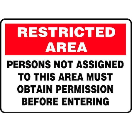 Accuform MADM915VP Plastic Sign, "RESTRICTED AREA PERSONS NOT ASSIGNED TO THIS AREA MUST OBTAIN", 7" Length x 10" Width x 0.055" Thickness, Red/Black on White