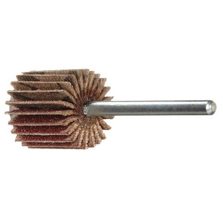 Flap Wheel, Abrasive Material Aluminum Oxide, Abrasive Type Coated, Backing Material Cotton, Backing Weight X, Grit P120, Series R369, Flap Width 5/8 in, Maximum Operating Speed 35,000 RPM, Shank Size 1/8 in, Overall Diameter 3/4 in, Grade Medium, Shank Type Straight, Coating Coverage Closed, Resistance Properties Wear
