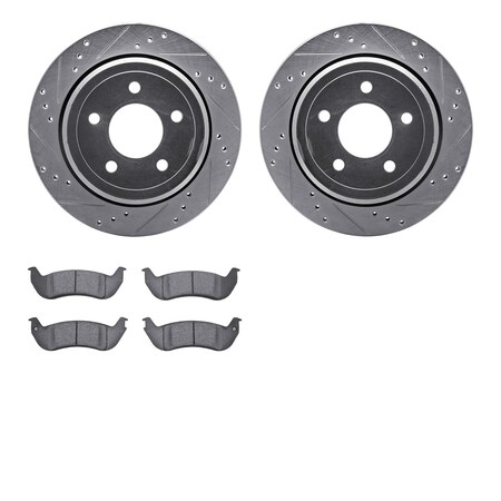 Dynamic Friction Company Rear Brake Rotors-Drilled and Slotted-Silver with Heavy Duty Brake Pads 7202-56001