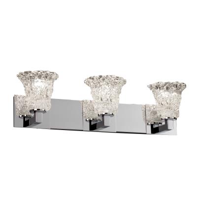 Justice Design GLA-8923-20-LACE-CROM Veneto Luce Modular - 3 Light Bath Bar with Round Flared Lace Venetian Glass, Finish Color: Polished Chrome, Lamping Type: Incandescent