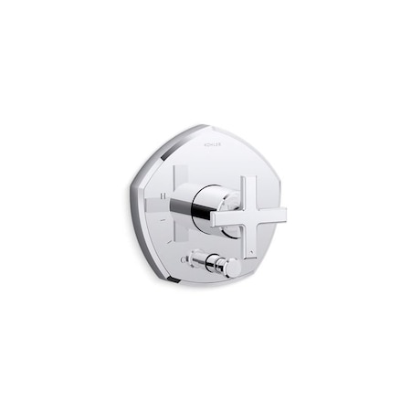 KOHLER T27044-3-CP Occasion Rite-Temp Shower Valve Trim Kit with Push-Button Diverter, Cross Handle, Polished Chrome