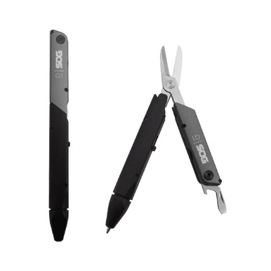 SOG Multitool Tactical Pen - Baton Q1 TSA Approved Travel Accessories, Multitool Pen with Travel Scissors, EDC Gear (ID1001-CP), 4 Tool
