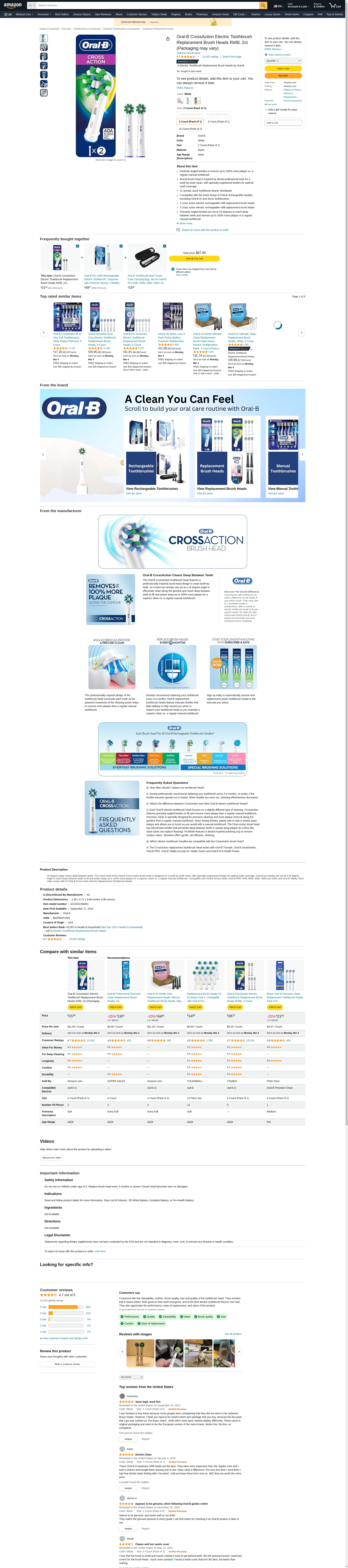As one of Oral-B's , the CrossAction features precise angles that target plaque to remove up to 100% more plaque vs. a regular manual toothbrush. The shape of Oral-B CrossAction toothbrush head features specifically engineered bristles that are designed for optimal tooth coverage. The unique bristles reach deep between teeth to remove plaque and leave your whole mouth cleaner than a regular manual toothbrush. Compatible with all oscillating/rotating brushes.