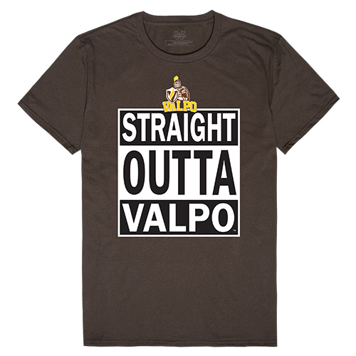 W Republic Apparel 511-154-313-02 Valparaiso University Straight Outta College Tee for Men - Brown, Medium