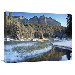 Global Gallery GCS-452084-2432-142 24 x 32 in. Snow Lined River Flowing Below Breccia Cliffs, Wyoming Art Print - Ti