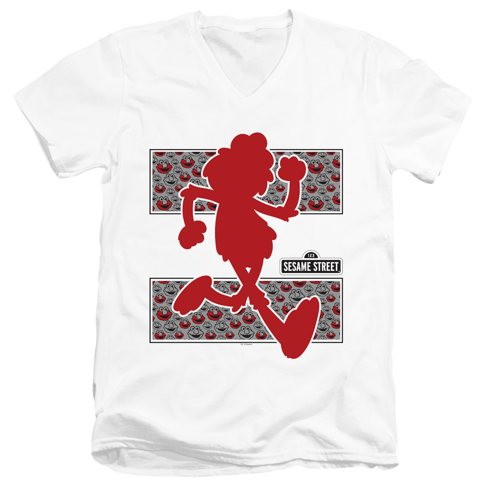Trevco SST274-AV-5 Sesame Street & Elmo Runs-Short Sleeve Adult V-Neck 30-1 T-Shirt, White - 2X