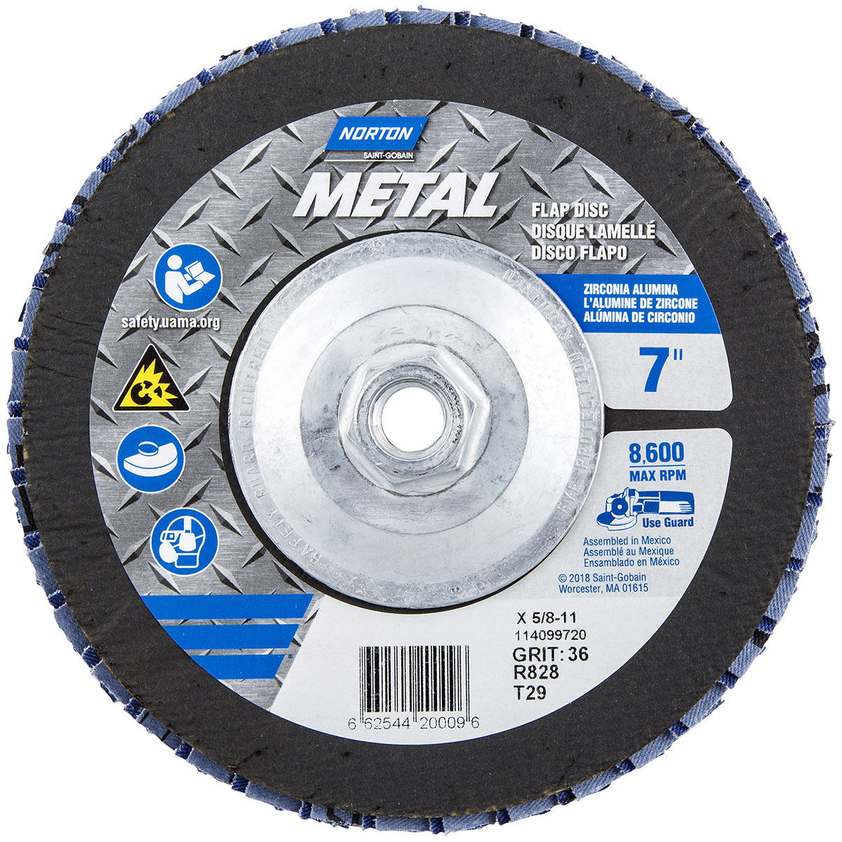 Norton 66254420009 7x5/8-11” Metal R828 Zirconia Alumina Type 29 Flap Discs, 36 Grit, Coarse, 10 Pack