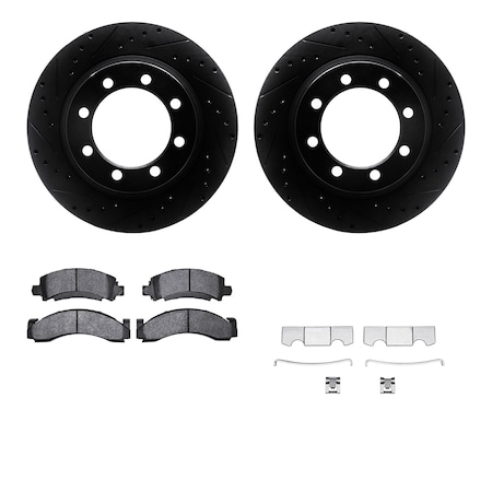 8212-48086, Rotors-Drilled, Slotted-BLK w/Heavy Duty Brake Pads incl. Hardware, SLVGeospec Coat,