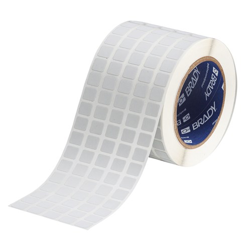 Metallized Polyester Labels, 0.437" H x 0.5" W, Roll of 10000 Labels, Light Gray. Matte, light gray finish gives labels a rating and serial plate appearance. Labels are designed to withstand numerous solvents and variable temperatures when applied to various surfaces. UL approved; CSA accepted. Service temperature of -40 to 248° F (-40 to 120° C). For use with BBP11 Label Printer, BBP81 Label Printer, Brady IP Series Label Printer, BradyPrinter i5100 Industrial Label Printer, BradyPrinter i7100 Industrial Label Printer, Brady THT 3" Core Printers