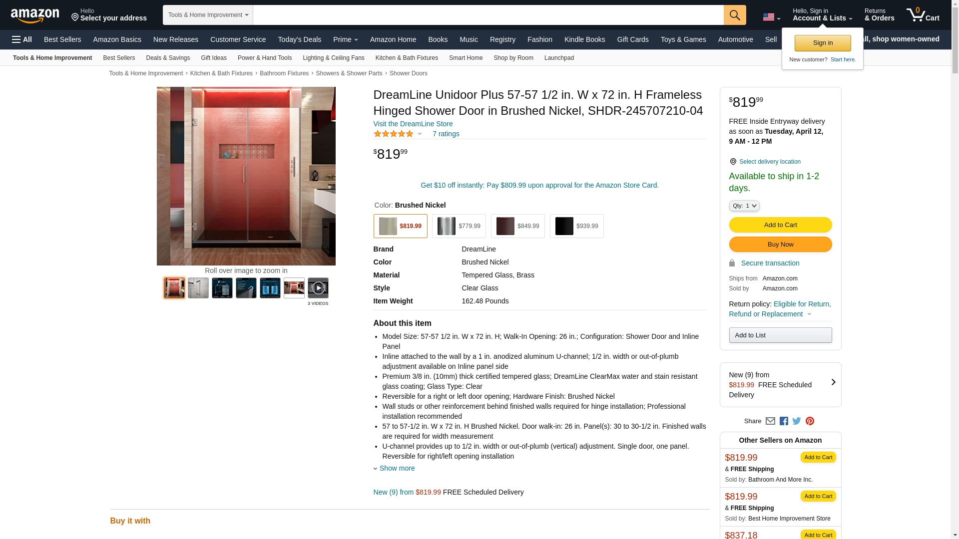 | Feature | 57 to 57-1/2 in. W x 72 in. H Brushed Nickel. Door walk-in: 26 in. Panel(s): 30 to 30-1/2 in. Finished walls are required for width measurement |