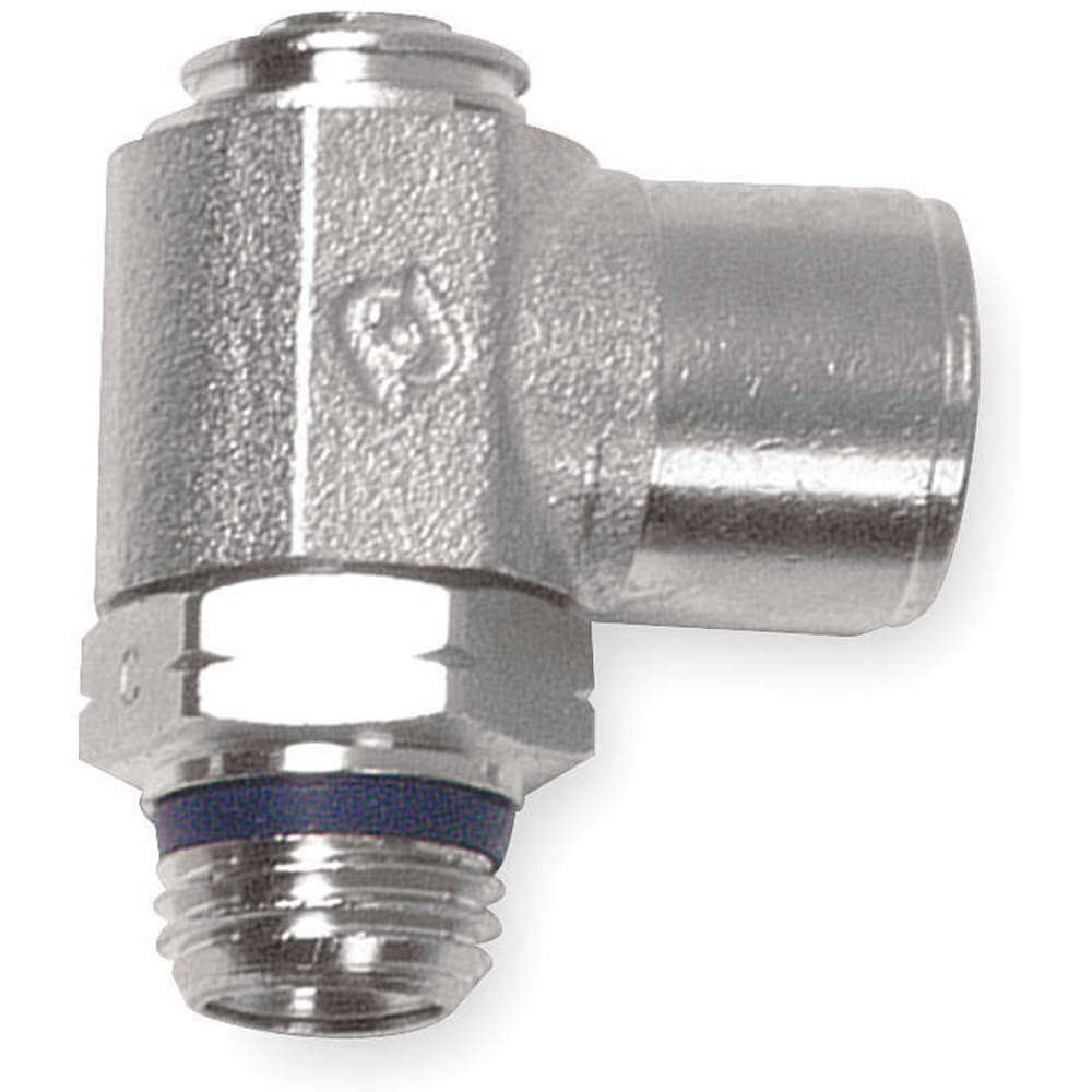 'Universal Flow Control, Elbow, Pipe Size 1/8 In., Tube Size 1/4 In., Connection NPT x Tube, Body Material Nickel-Plated Brass, Flow In and Out, Adjustment Screw, Pressure Range 0 to 250 psi, Temp. Range 0 Degrees to 160 Degrees F'