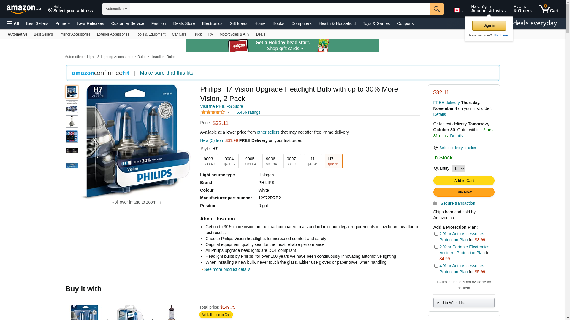 | Feature | Philips H7 12972 Vision Upgrade automotive bulb |