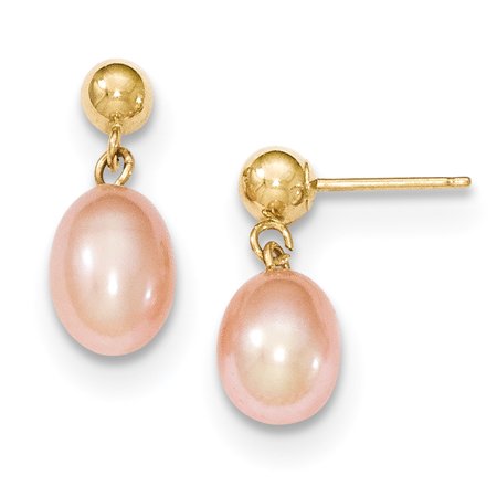 14k 6-7mm Pink FW Cultured Pearl Dangle Earrings XF267E