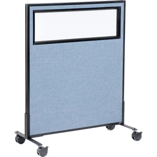 Interion® Mobile Office Partition Panel with Partial Window, 36-1/4"W x 45"H, Blue