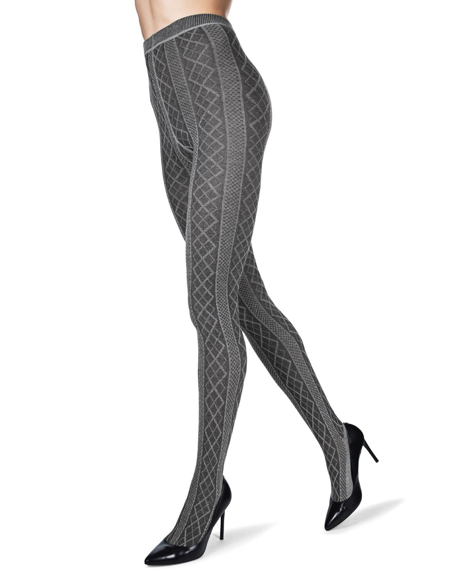 Memoi MO-389-01004-M-L Womens Juneau Diamonds Sweater Tights, Charcoal Heather - Medium & Large