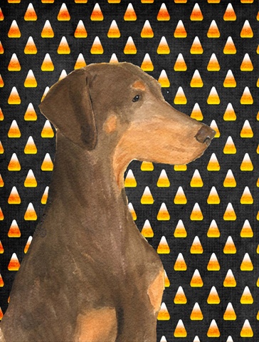 Carolines Treasures SS4272CHF Doberman Candy Corn Halloween Portrait Canvas Flag - House Size, 28 x 40 in.