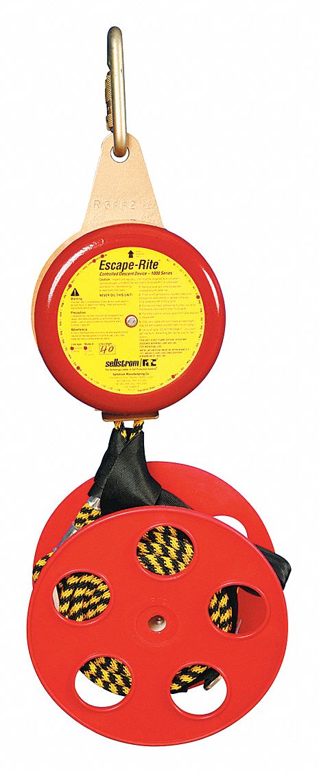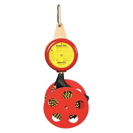 Rescue and Descent System Length 150 ft. Weight Capacity 400 lb. Tensile Strength 5000 lb. Strap Width 30 In. Cable Dia 5/16 In. Line Material Polyester Hardware Material Brass and Zinc Plated Steel For Use With Anchor Point Locking Harness Connection Hook Type Without Anchorage Connector Locking Anchorage Connection Hook Type Carabiner Anchorage Hook Gate Opening 5/8 In. Color Red/Yellow Includes Installation Carabiner (2) Escape Belts Cable Storage Reel