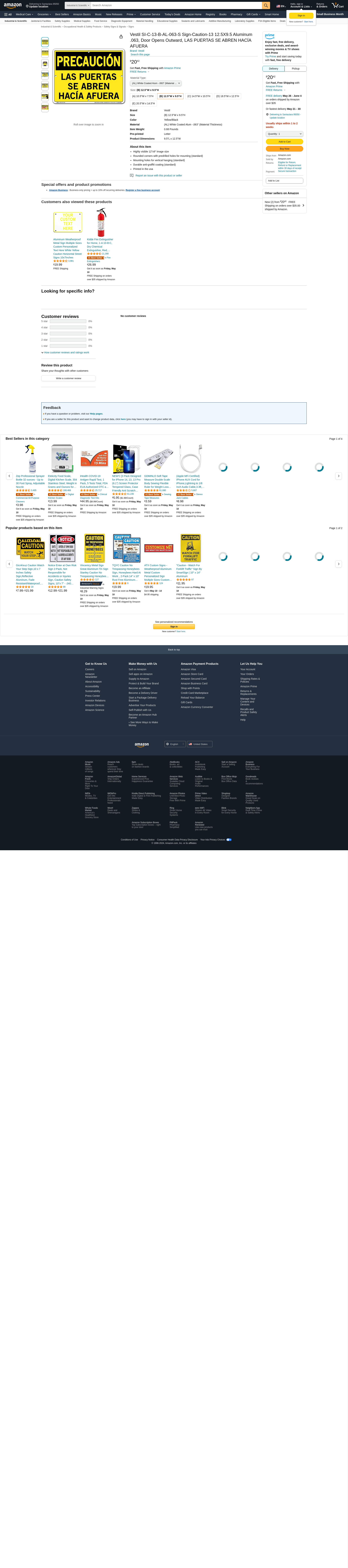 Vestil SI-C-13-B-AL-063-S Sign-Caution-13 12.5X9.5 Aluminum .063, Door Opens Outward, LAS PUERTAS SE ABREN HACÍA AFUERA