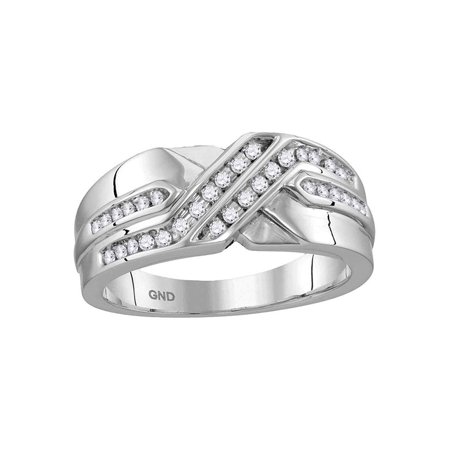 <ul> <li>10kt White Gold</li> <li>1/4 Carats total weight</li> <li>5.09 grams (approximately)</li> <li>Ring size selectable. All diamonds are natural and conflict-free in origin.</li> </ul>
