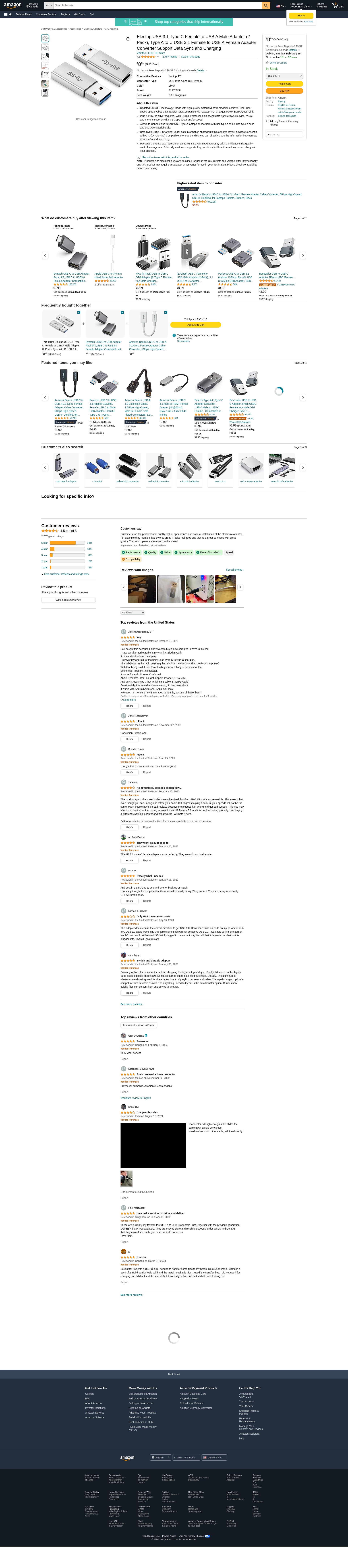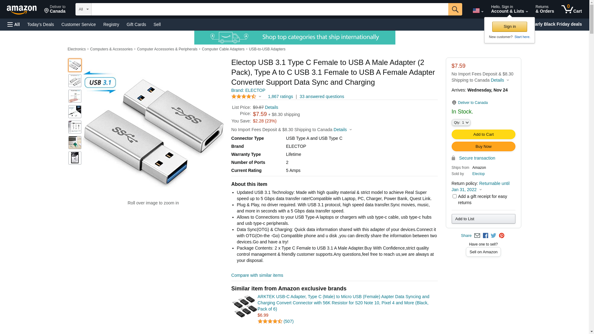 Amazon.com: Electop USB 3.1 Type C Female to USB A Male Adapter (2 Pack), Type A to C USB 3.1 Female to USB A Female Adapter Converter Support Data Sync and Charging : Cell Phones & Accessories