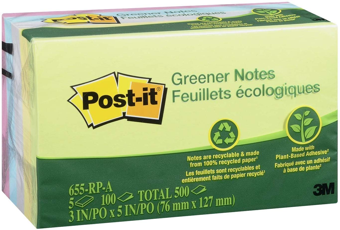 Greener Notes are the greener version of the original Notes you know and love. Made with 67% plant based adhesive and 100% recycled material which means no new trees were used. Use the 3 in. x 5 in. size for short lists or indexing projects. Unique adhesive designed for use on paper or in planners. A World of Color Helsinki Collection brings airy and clean colors that honor the simple pleasures of Scandinavian living. Greener Notes are recyclable. 5 Pads/Pack, 100 Sheets/Pad. Sold as 6 Pack