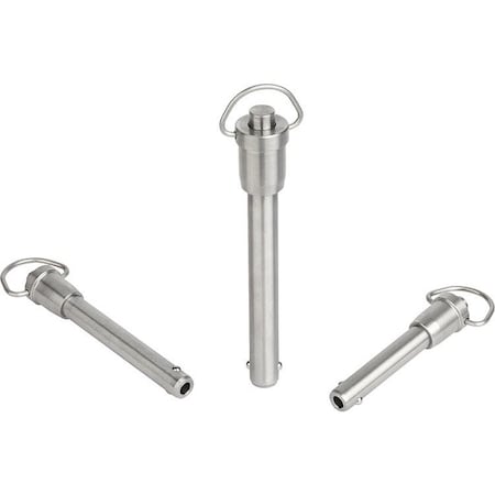 Ball Lock Pin With Grip Ring, D1=8, L=20, L1=8, L5=28, Stainless Steel, Comp:Stainless Steel