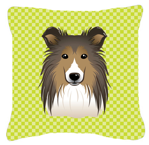 Carolines Treasures BB1304PW1818 Checkerboard Lime Green Sheltie Fabric Decorative Pillow, 18 x 18 In.