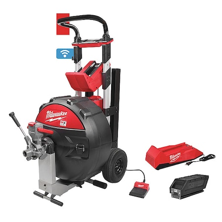 SEWER DRUM MACHINE, CORDLESS, 200 RPM, 100 FT, 3 TO 8 IN, 100 FT 3/4 IN, POLYPROPYLENE PLASTIC