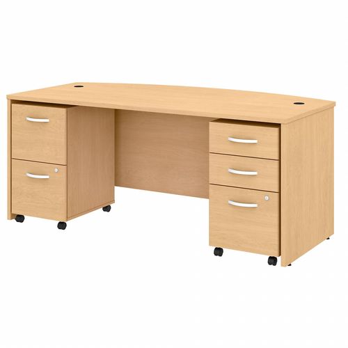 Bush Business Furniture Studio C Bow Front Desk with Mobile File Cabinets, 72W x 36D, Natural Maple